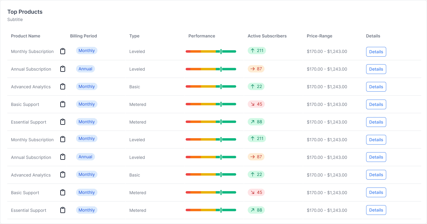 Create flexible business models for your customers. We support one-time, recurring, and usage-based billing models.
